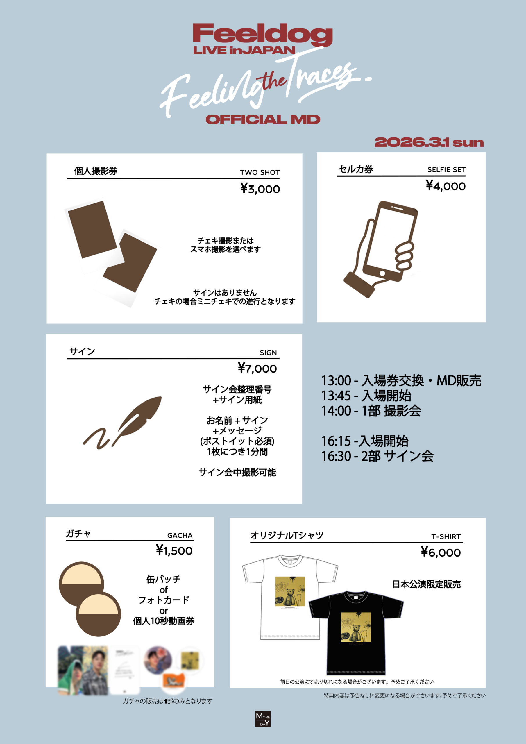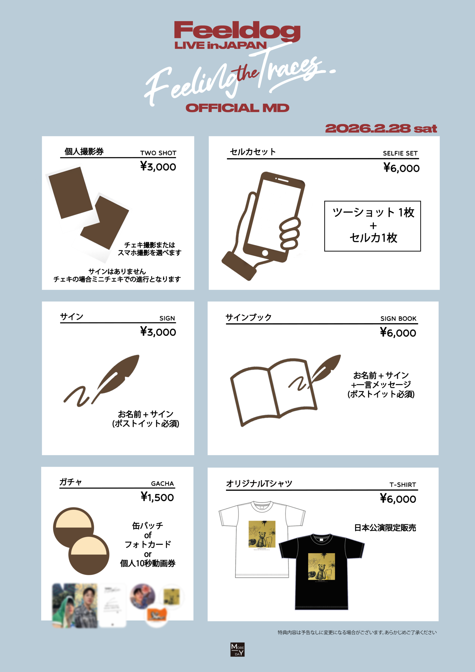 Feeldog LIVE in JAPAN -Feeling The Traces- 各日程特典会・販売グッズのお知らせ